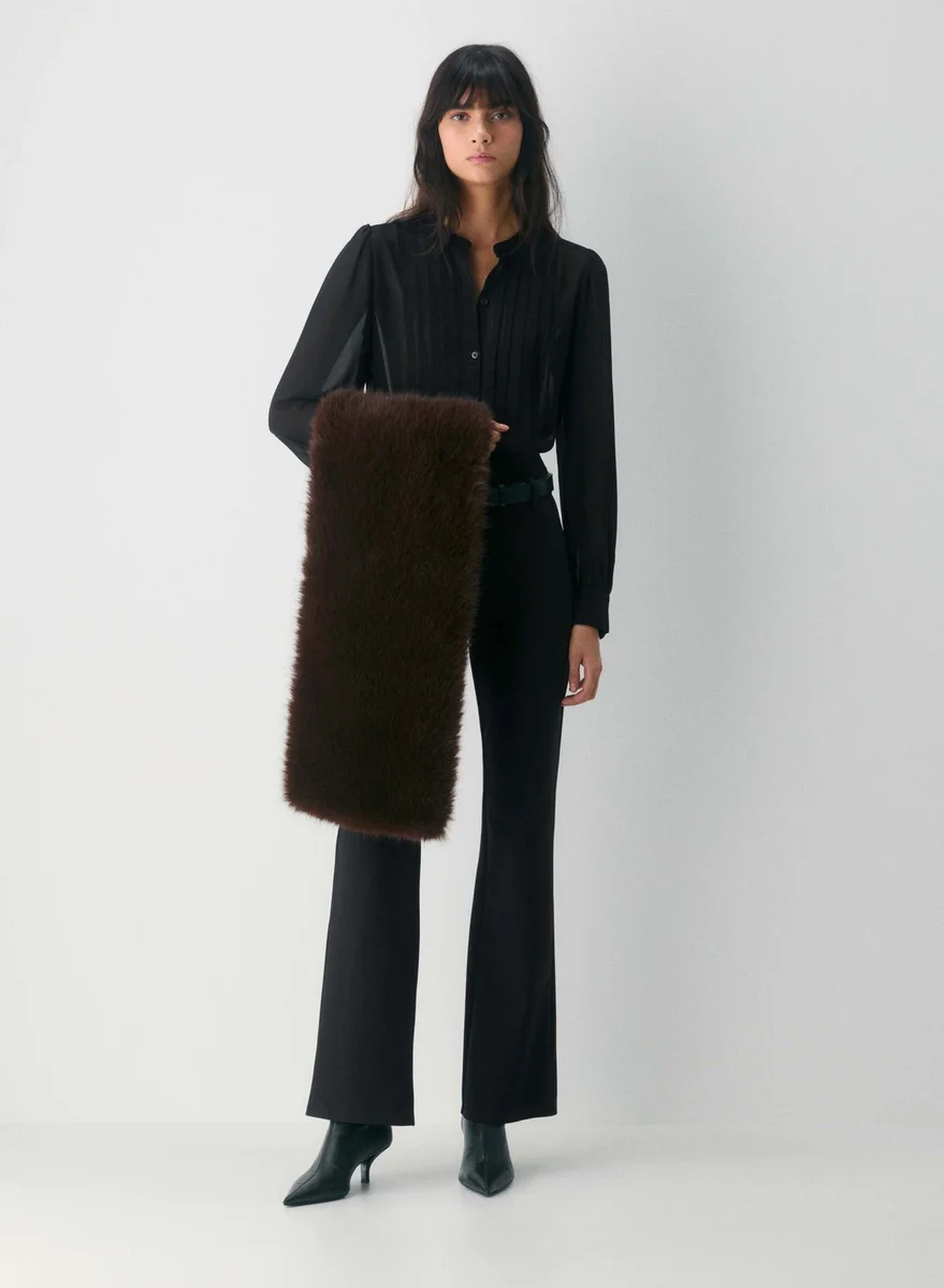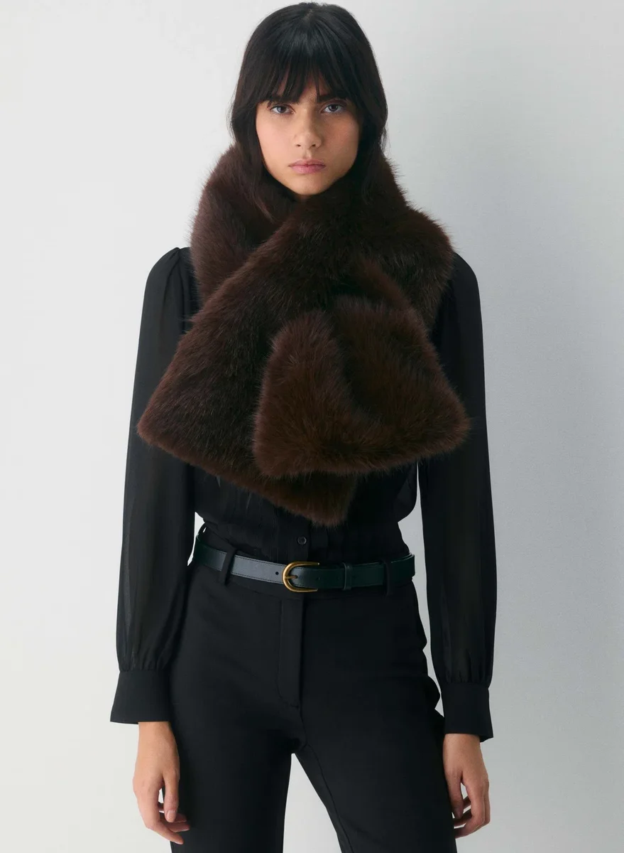 Dies ist ein klassischer rechteckiger Schal. Er ist aus Arctic Faux Fur gefertigt – ultraweichem Kunstfell, das wie echtes Fuchsfell aussieht und sich auch so anfühlt.