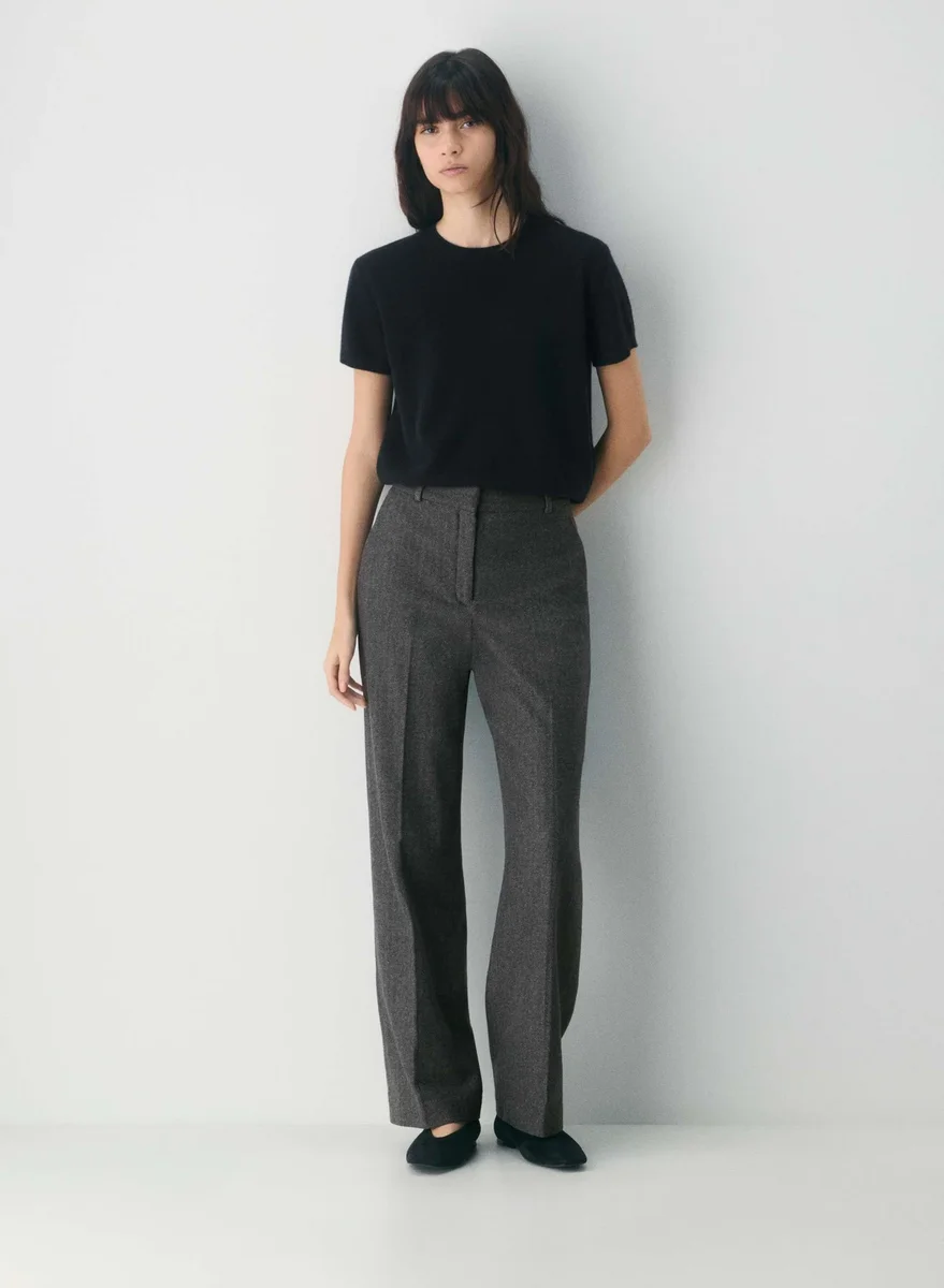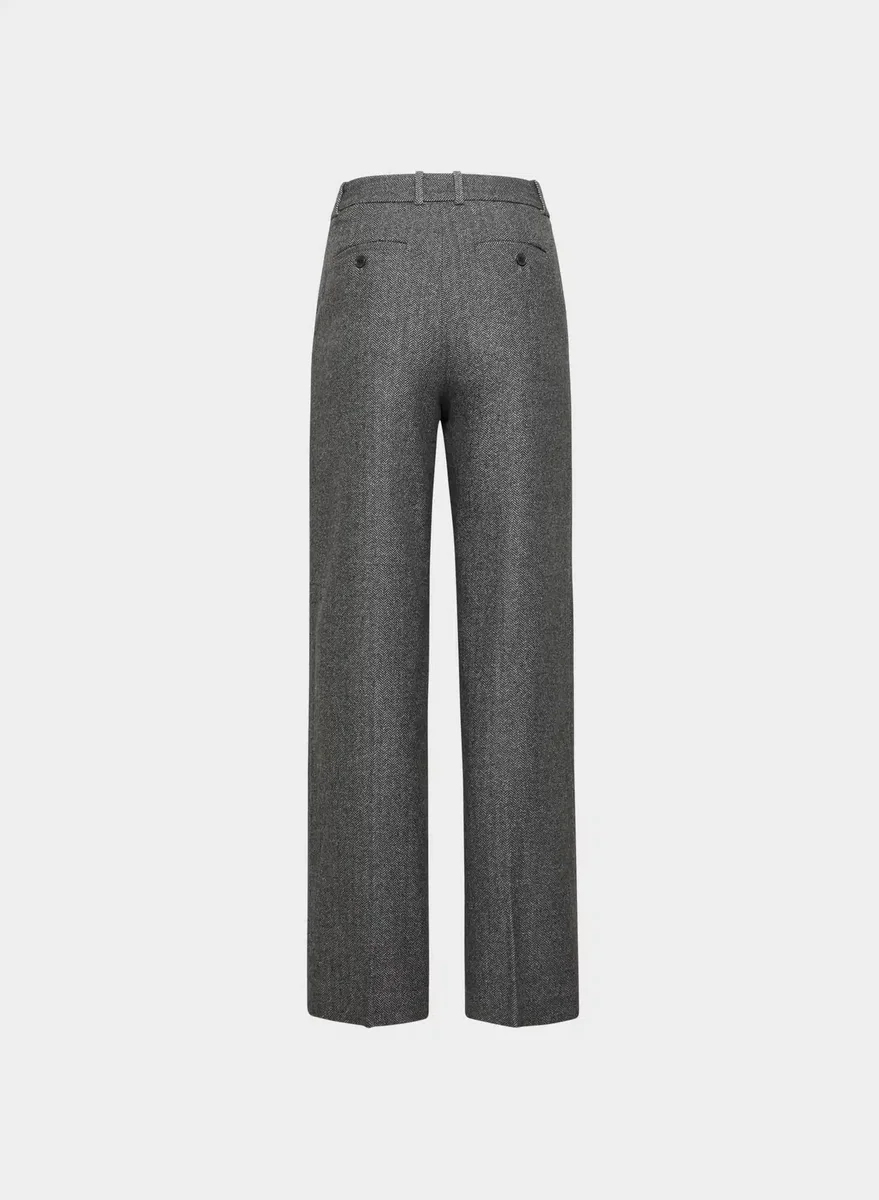 Hoch geschnittene Hose aus italienischem Wollflanell mit weitem Bein