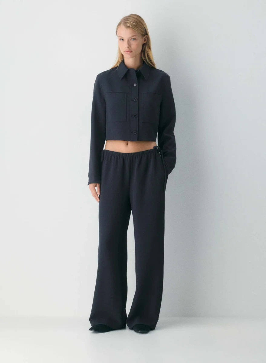Dies ist eine Pull-on-Hose mit lockerer Passform und einem Kordelzugbund, den Sie an den Seiten zu kleinen Schleifen binden können. Sie ist aus Crepette™ gefertigt – unserem einzigartigen japanischen Kreppstoff, der wegen seiner subtilen Textur, seinem luftigen Fall und der Tatsache, dass er praktisch nie knittert, sehr beliebt ist.