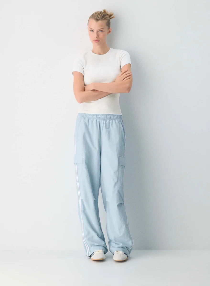 Oversized-Gepäck Diese Cargohose hat eine Oversized-Passform, einen Reißverschluss am Saum und einen innenliegenden Kordelzug in der Taille. Sie ist aus wasserabweisendem Nylon mit geknitterter Oberfläche gefertigt.