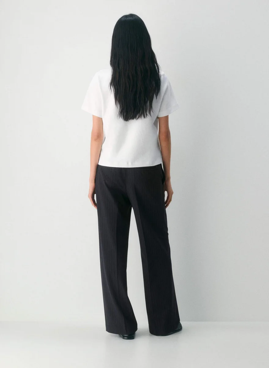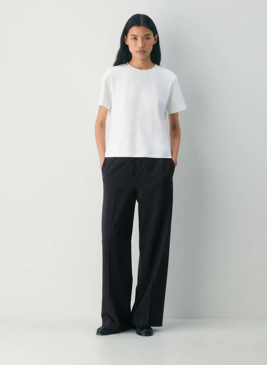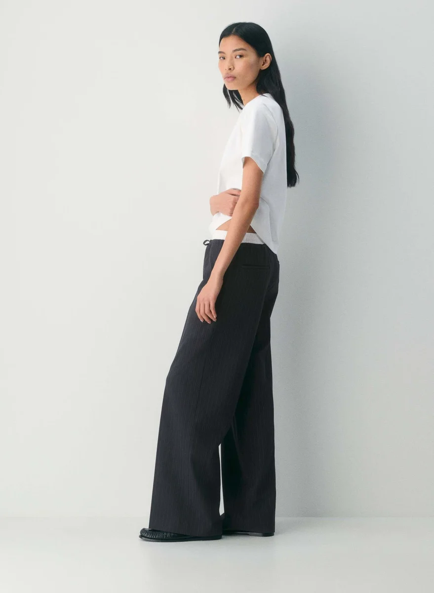 Dies ist eine mittelhohe Hose mit weitem Bein, lockerer Passform und kontrastierendem doppeltem Bund. Sie ist fachmännisch aus (Re)ssential Light gefertigt – einem weichen Stretchstoff, der leicht und fließend ist und sich ideal für den Alltag eignet. Dieser Stoff stammt aus einer erstklassigen portugiesischen Weberei und besteht zu 60 % aus recyceltem Polyester und zu 29 % aus LENZING™ ECOVERO™ Viskose.