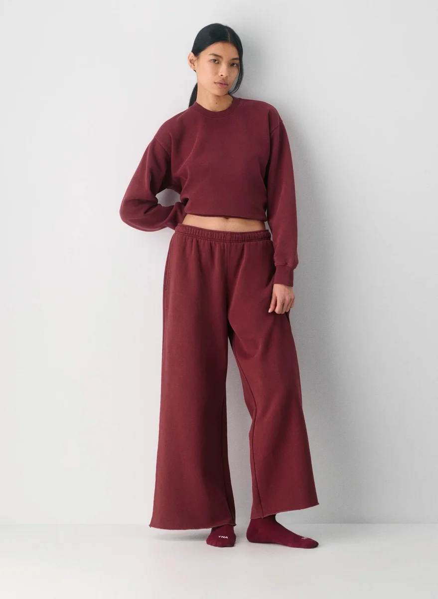 Diese Sweatpants mit niedriger Leibhöhe haben ein extrem weites Bein, das in einem unversäuberten Saum endet. Sie ist aus Aritzias Cozy Sweatfleece gefertigt – einem hochwertigen, mittelschweren Fleece, das für seine weich gebürstete Rückseite, seine Wildlederoptik und sein wolkenweiches Tragegefühl bekannt ist. Die beste Art von Gemütlichkeit.