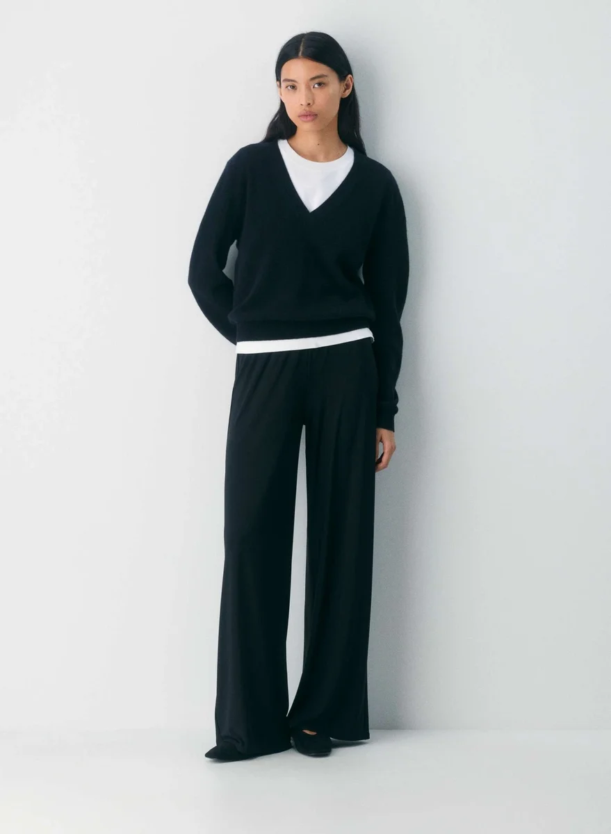 Dies ist eine Pull-on-Hose mit lockerer Passform. Sie ist aus der schweren Version von Smooth Matter™ gefertigt – einem fließenden Stretch-Jersey mit luxuriösem, glattem Griff und sanftem Glanz.