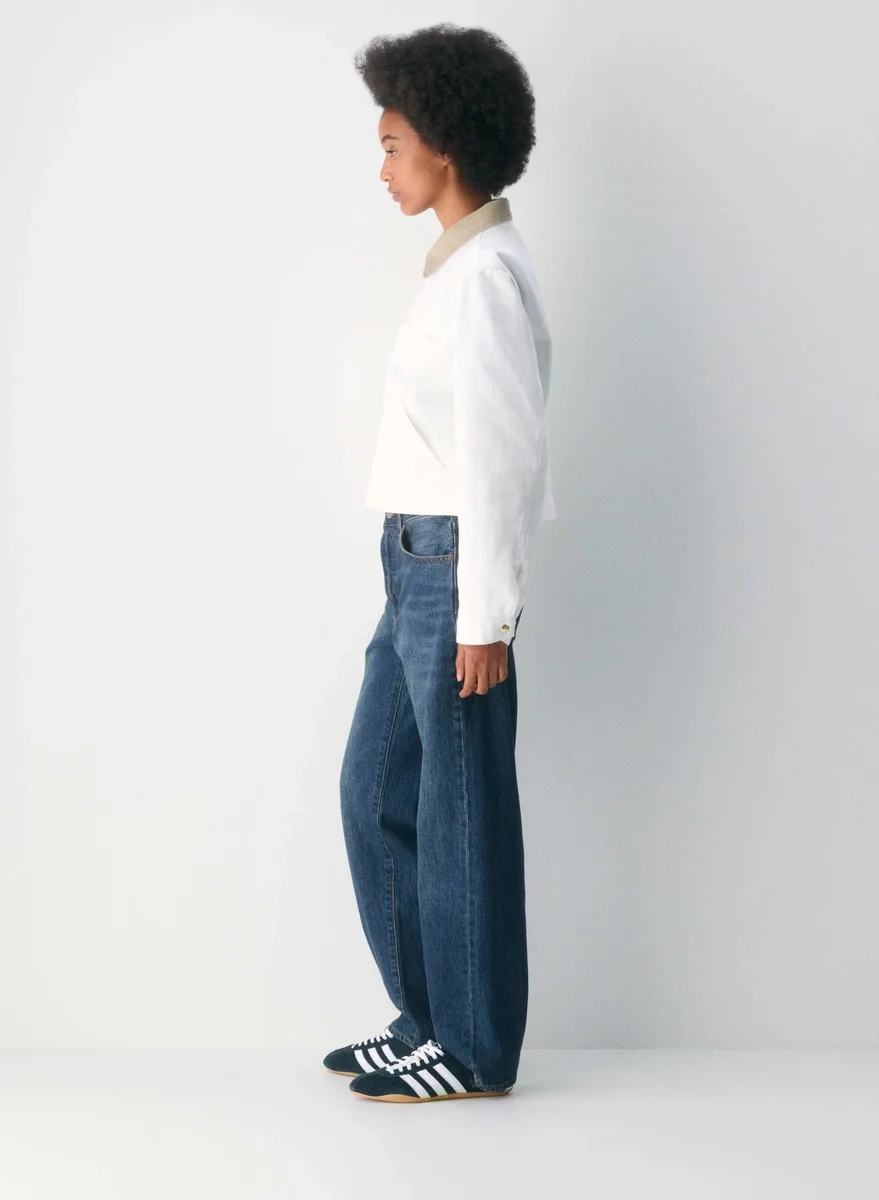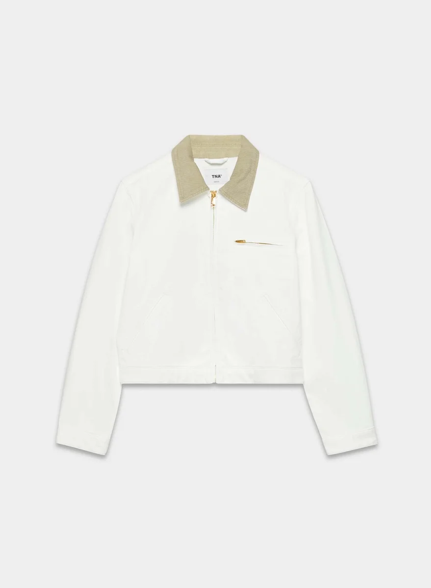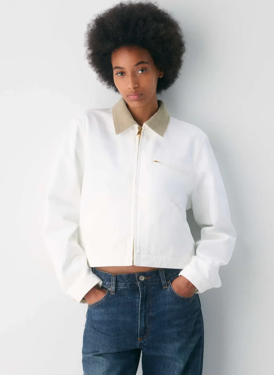 Dies ist eine Arbeitsjacke mit Cordkragen, Leistentaschen vorne und einer lockeren Passform. Sie ist aus HangTough gefertigt – einem mittelschweren Stoff aus 100 % Baumwolle mit einem von Arbeitskleidung inspirierten Look und einem weichen, getragenen Gefühl.