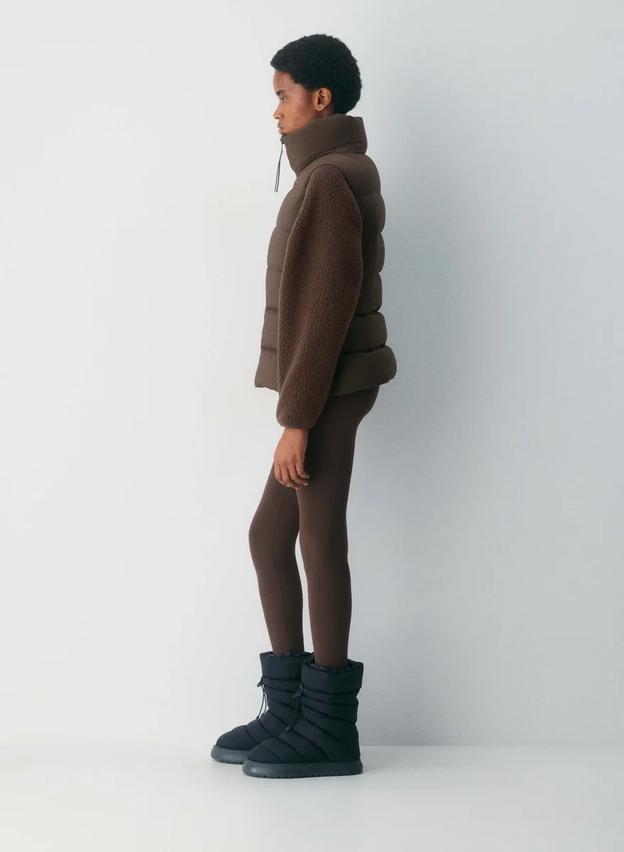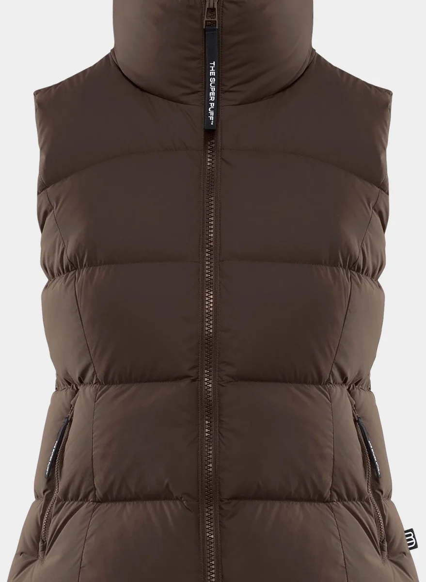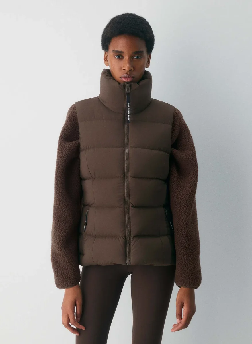Die SuperSnug Puff™ Weste wurde mit maximalistischen Proportionen entworfen und zeichnet sich durch eine Sanduhr-Silhouette mit einer schmalen Passform aus, die sich dem Körper anschmiegt und Sie dort warm hält, wo es darauf ankommt. Tragen Sie sie allein oder als zusätzliche wärmende Schicht unter Mänteln und Jacken, wenn die Temperaturen wirklich sinken. Sie ist mit 100 % verantwortungsvoll gewonnenen Premium-Daunen mit einer Füllkraft von über 800 gefüllt, die für eine extrem warme und leichte Isolierung sorgen. Sie besteht aus cliMATTE™ – einem wasserabweisenden und windresistenten Ripstop-Gewebe mit mattem Finish und weichem Griff. Es stammt aus einer japanischen Fabrik, die sich auf Funktionsstoffe spezialisiert hat.
