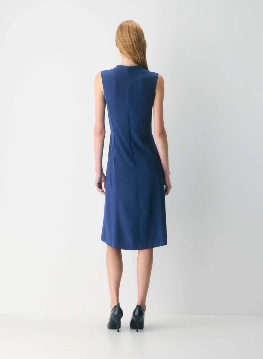 Ärmelloses Midi-Kleid aus Crêpe mit Stehkragen
