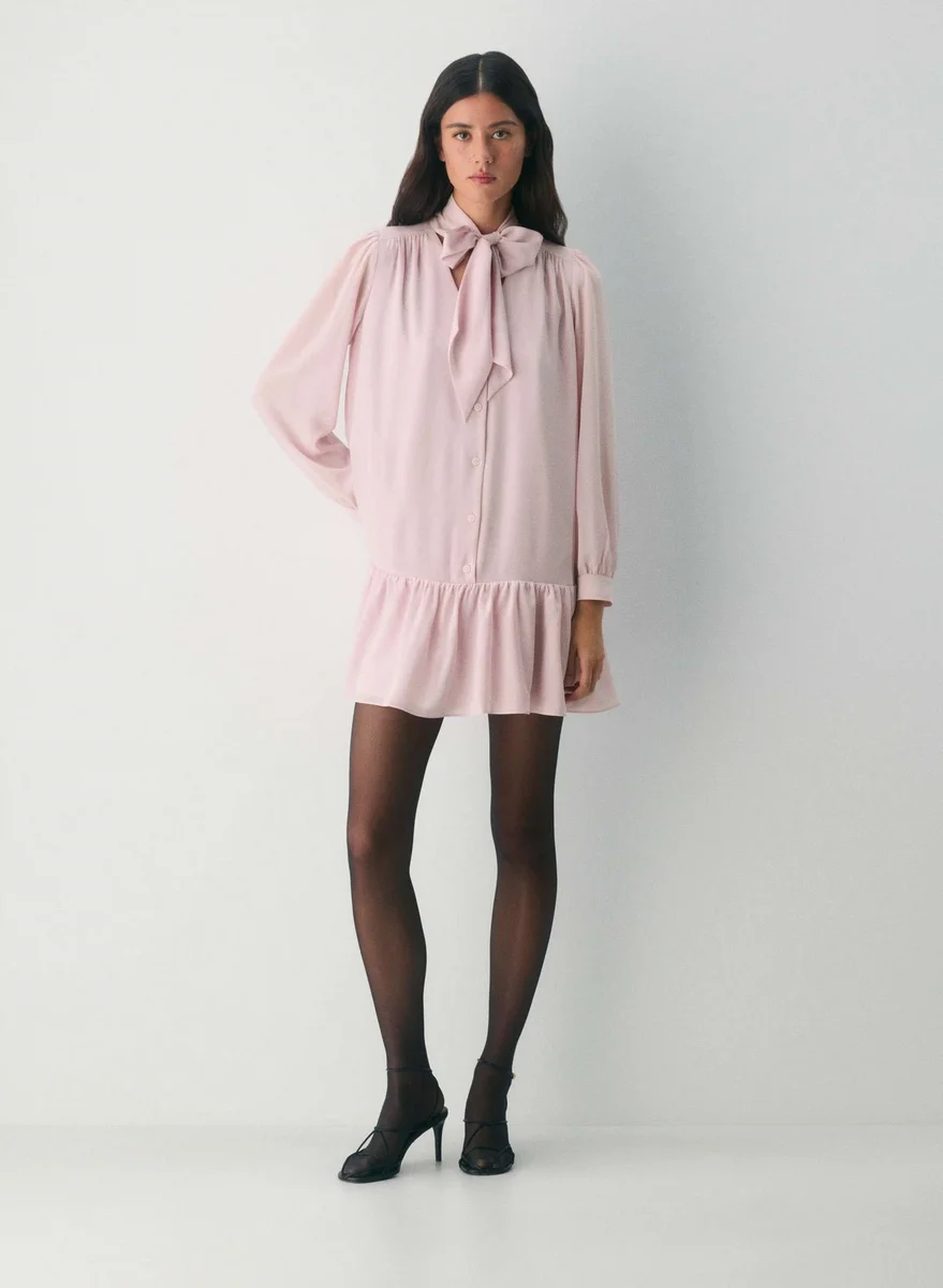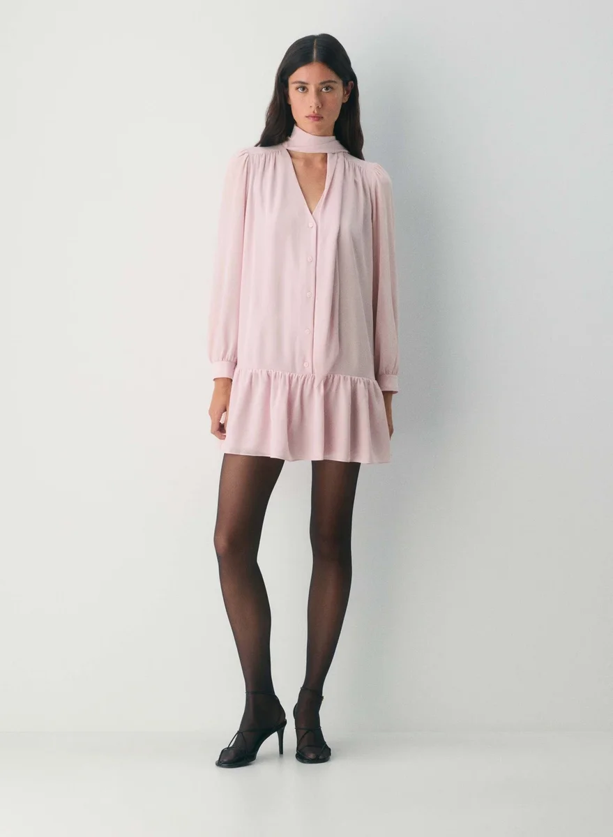 Wann ist Nachmittagstee?Dies ist ein Minikleid mit V-Ausschnitt, Knopfleiste vorne und tief sitzender Taille. Es ist aus Fête Chiffon™ gefertigt – einem leichten, halbtransparenten Stoff mit einem luftigen Fall. Diese Version besteht zu 55 % aus recyceltem Polyester.