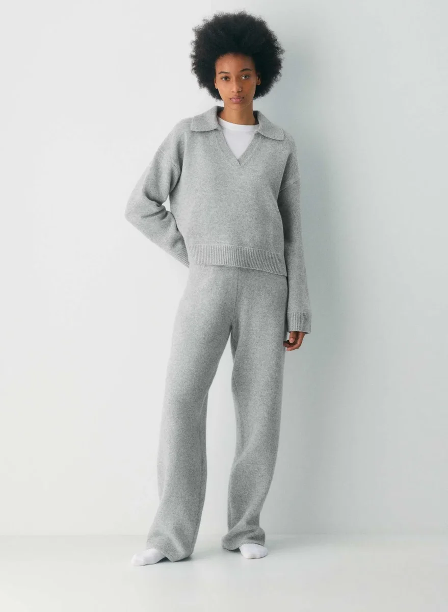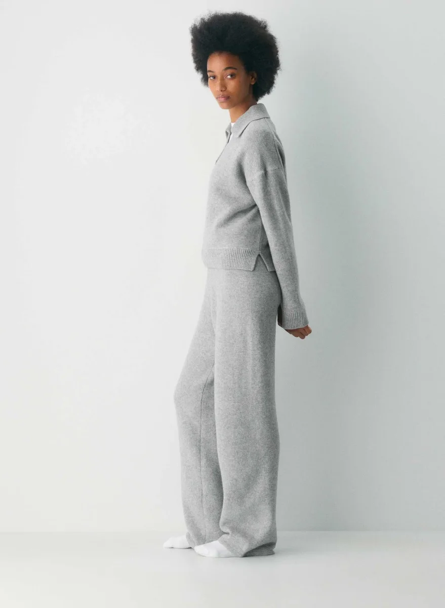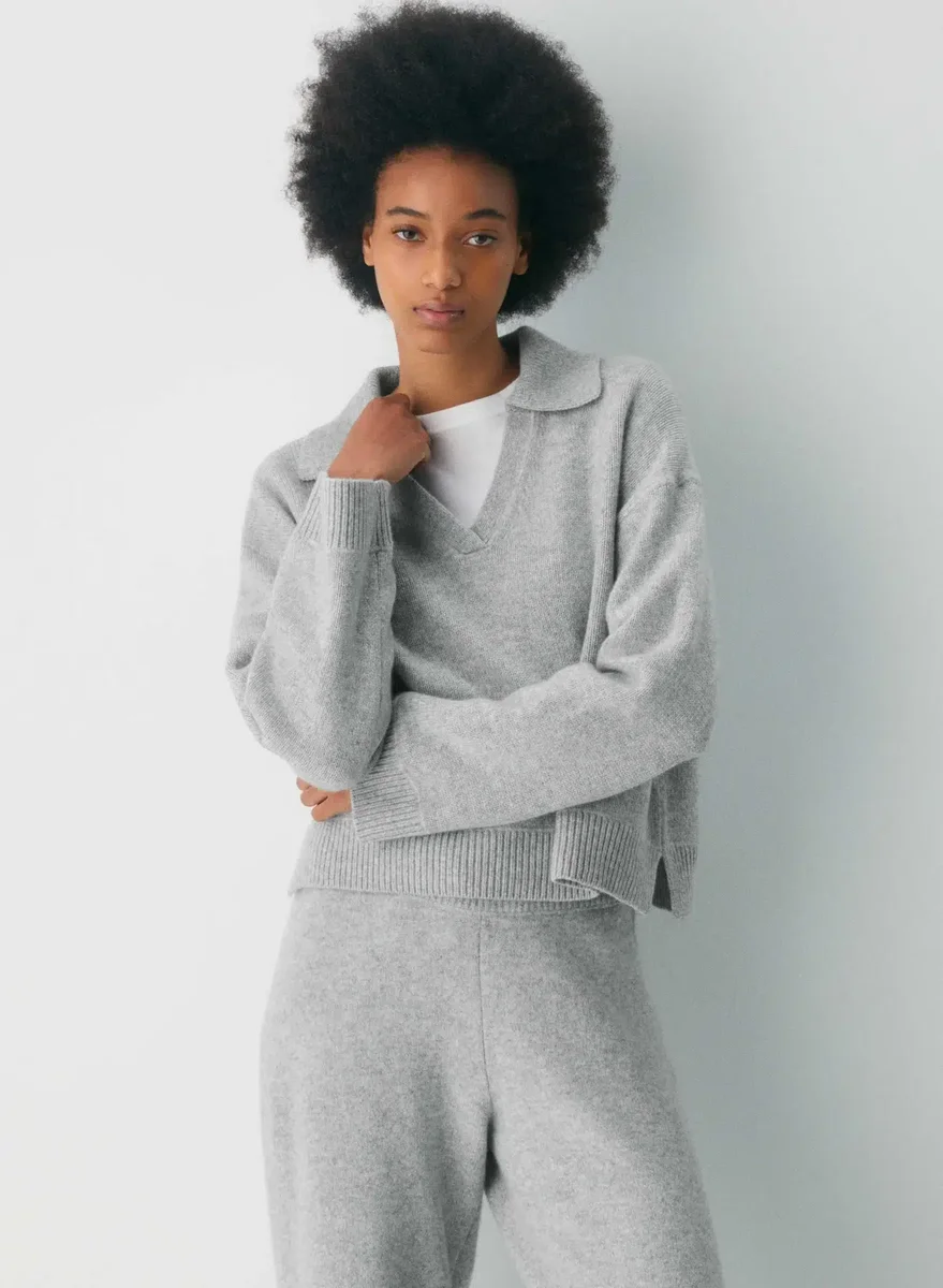 Dies ist ein Polo-Pullover mit lockerer Passform. Er ist aus verantwortungsvoll gewonnener, extrafeiner Merinowolle gestrickt und fühlt sich luftig und wolkenweich an. Dieses Kleidungsstück ist mit Jersey-Maschen gestrickt, die für einen weichen Fall und ein glattes, flaches Gefühl sorgen.