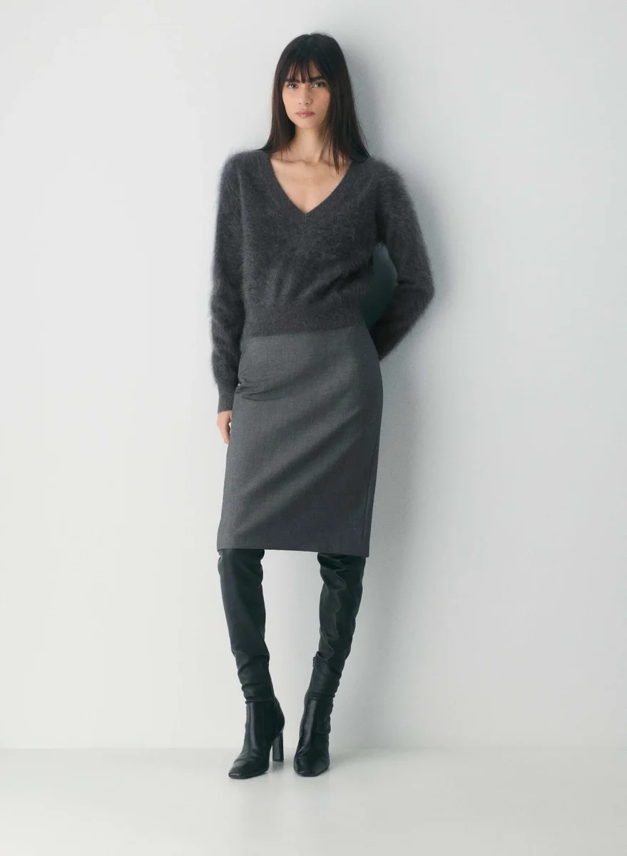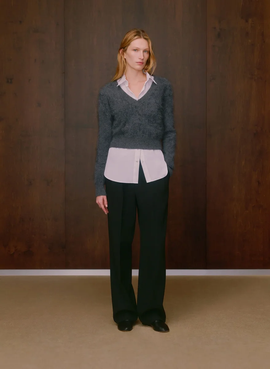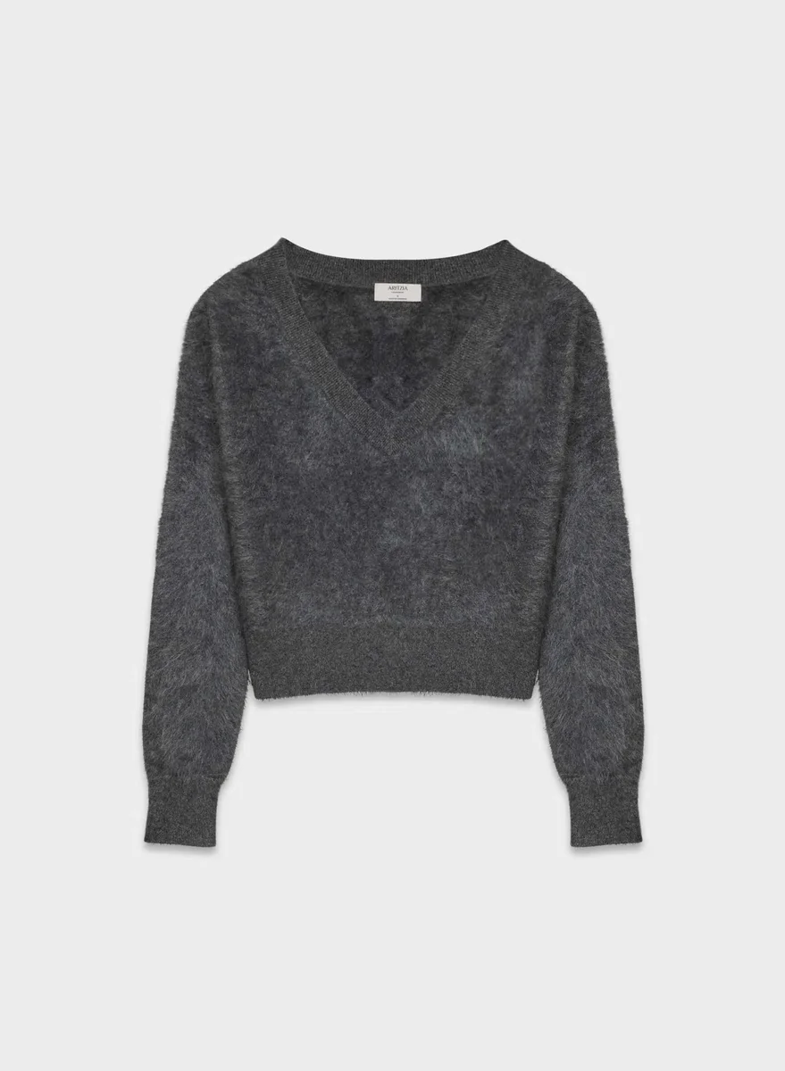 Dies ist ein Pullover mit V-Ausschnitt und klassischer Passform, der bis zur Taille reicht. Er ist aus Aritzias Brushed Cashmere gefertigt – einem hochwertigen Garn aus 100 % Kaschmir mit einem einzigartigen gebürsteten und flauschigen Look, das wegen seiner unverwechselbaren Weichheit und Wärme begehrt ist. Das beste verfügbare. Dieses Kaschmir ist nach dem Good Cashmere Standard® zertifiziert. Es ist mit einem Jersey-Stich für einen weichen Fall und ein glattes, flaches Gefühl konstruiert.