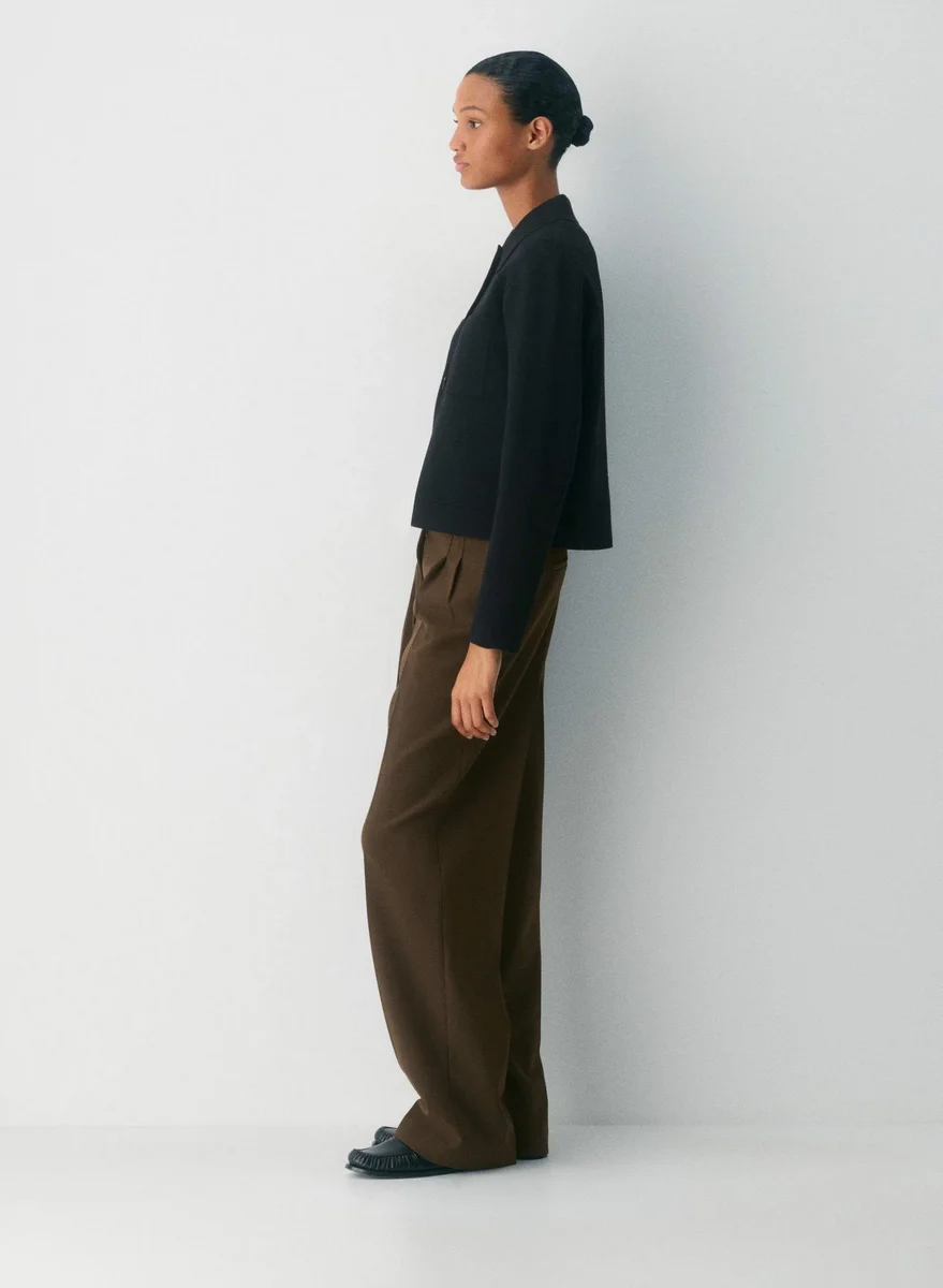 Dies ist ein Cardigan mit Kragen, lockerer Passform und aufgesetzten Taschen. Er ist aus Wonder Yarn gestrickt – einem leichten Garn, das seinem Namen alle Ehre macht. Dieser Stoff bietet die pfirsichweiche Weichheit von Wolle, ohne dass Wolle enthalten ist. Er besteht aus LENZING™ ECOVERO™ Viskose. Dieses Kleidungsstück ist mit einem Full-Milano-Stich mit doppelter Struktur für ein flaches, dichtes Gefühl gefertigt.