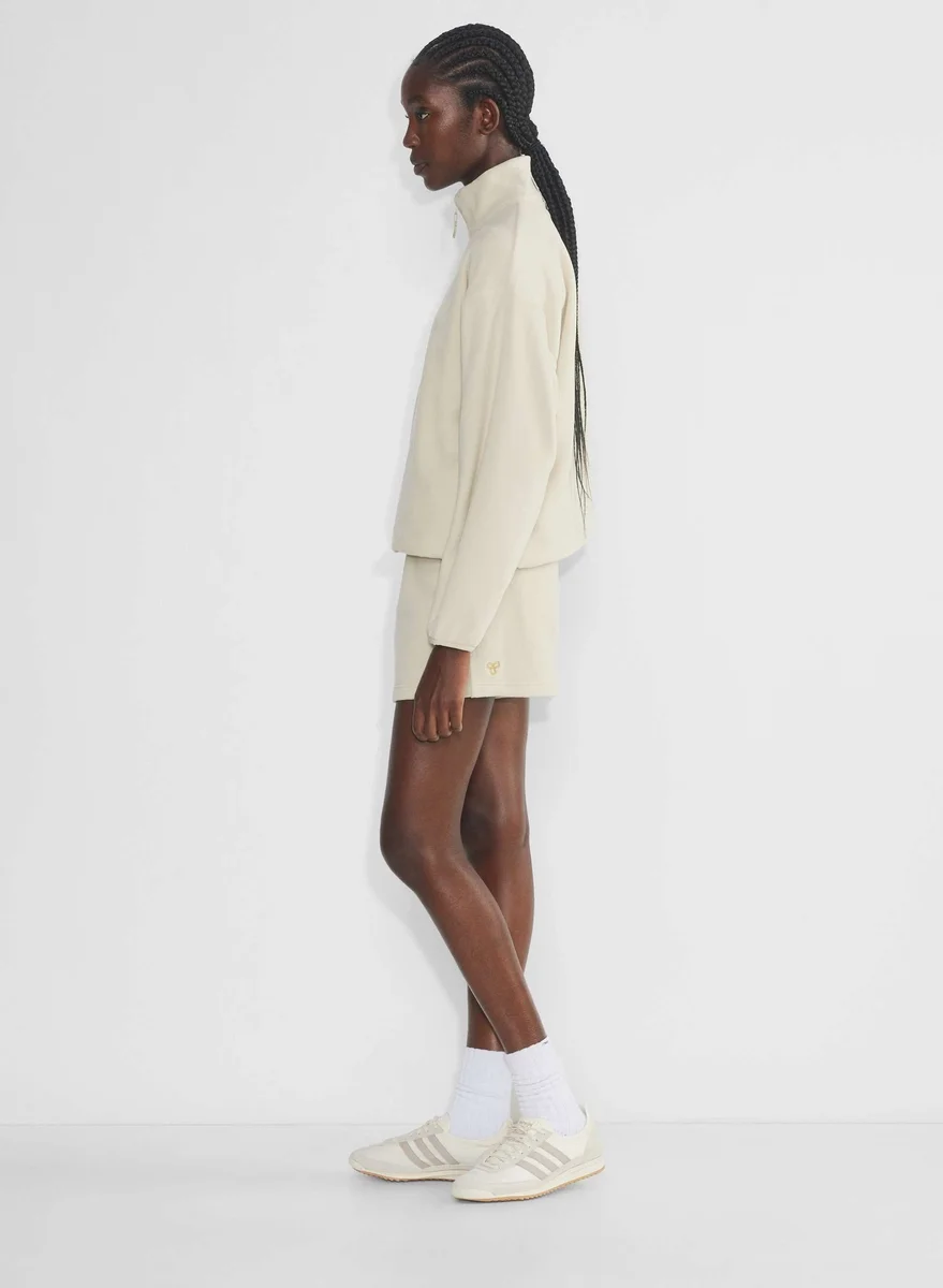 Für besonders kalte TageDies ist ein langärmeliges Sweatshirt mit Stehkragen, 1/4-Reißverschluss vorne und Reißverschlusstaschen. Es besteht aus Polartec® 200 – einem atmungsaktiven Mikro-Thermofleece, das schwerelose Wärme und weichen Komfort für vielseitige Leistung bietet. Dieser Stoff besteht zu 100 % aus recyceltem Polyester.