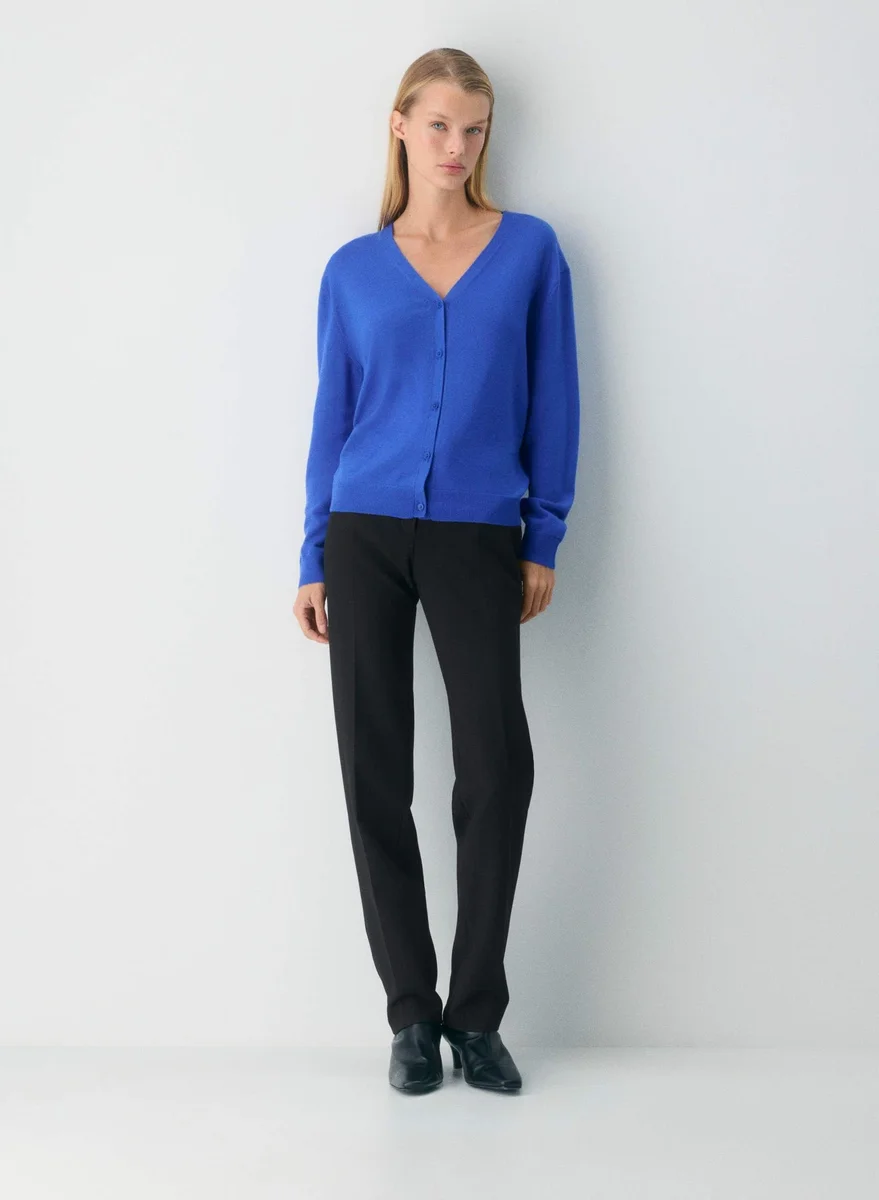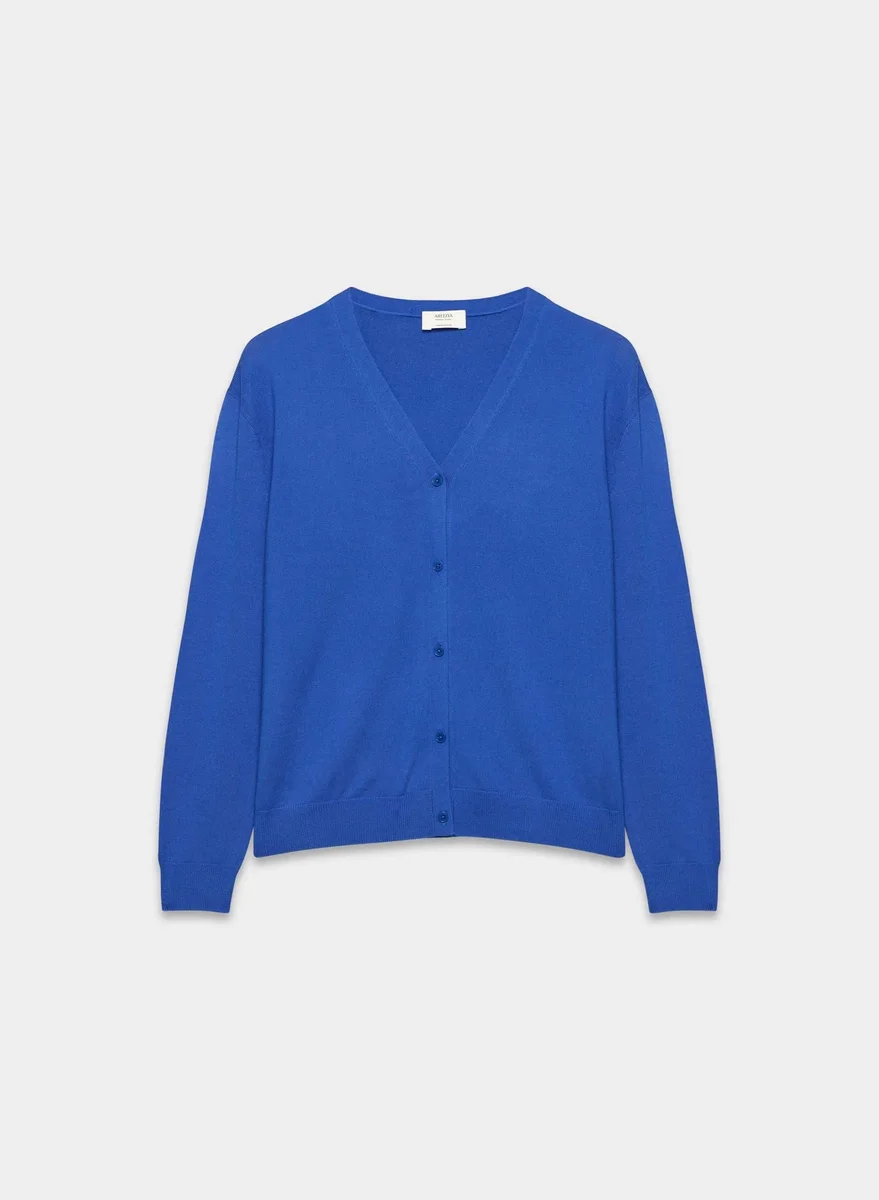 Leichte Strickjacke mit V-Ausschnitt aus 100 % extrafeiner Merinowolle