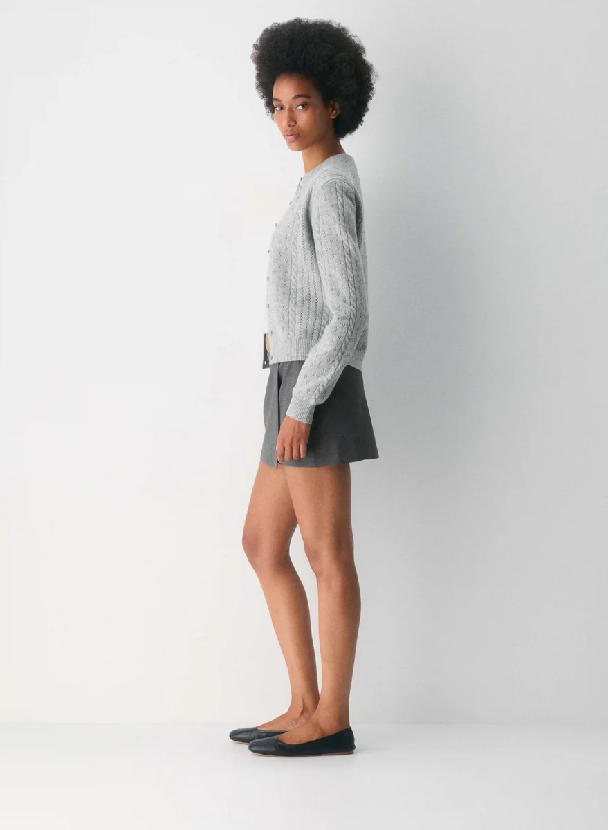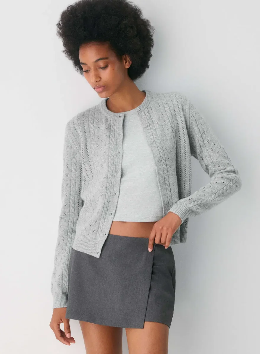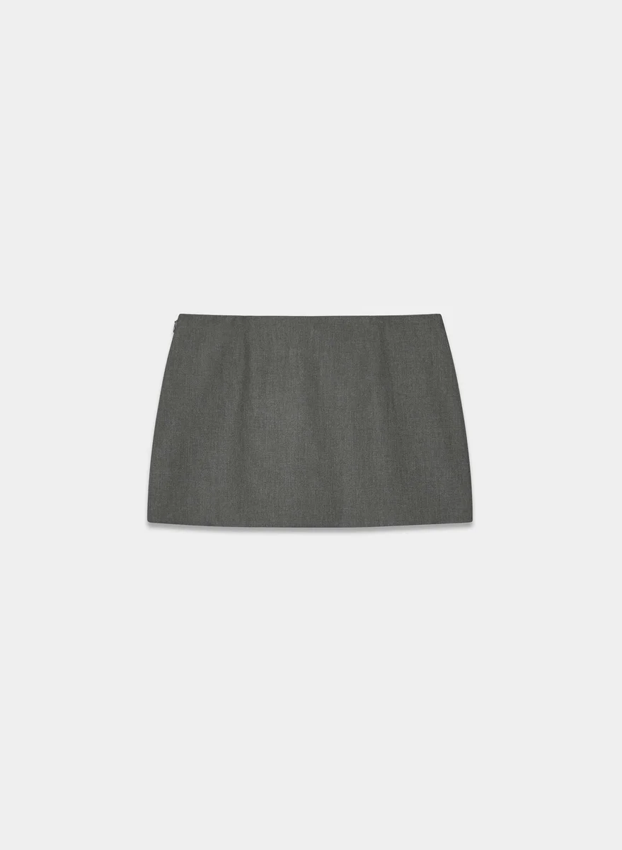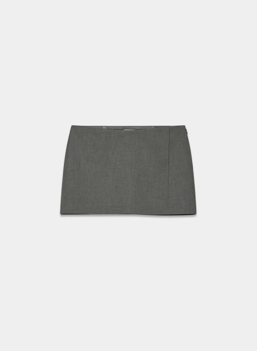 Dies ist ein Micro-Wickelrock mit unsichtbarem Seitenreißverschluss. Er ist aus weich strukturiertem Anzugstoff mit glatter Haptik gefertigt. Dieser Stoff stammt aus einer führenden portugiesischen Weberei und besteht aus 60 % recyceltem Polyester und 29 % LENZING™ ECOVERO™ Viskose.