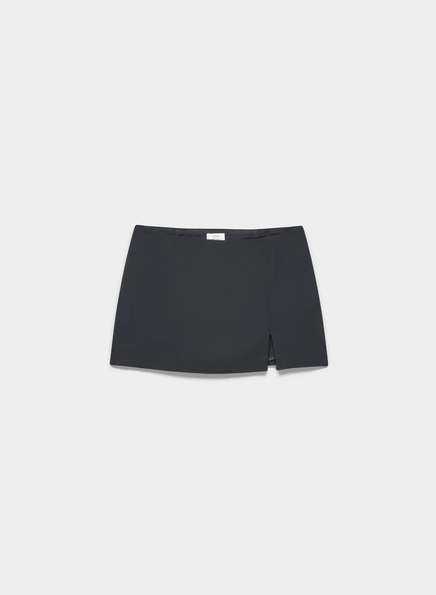 Dies ist ein Mikro-Skort mit mittlerer Leibhöhe. Er ist aus Crepette™ gefertigt – unserem einzigartigen japanischen Kreppstoff, der wegen seiner subtilen Textur, seinem luftigen Fall und der Tatsache, dass er praktisch nie knittert, sehr beliebt ist.
