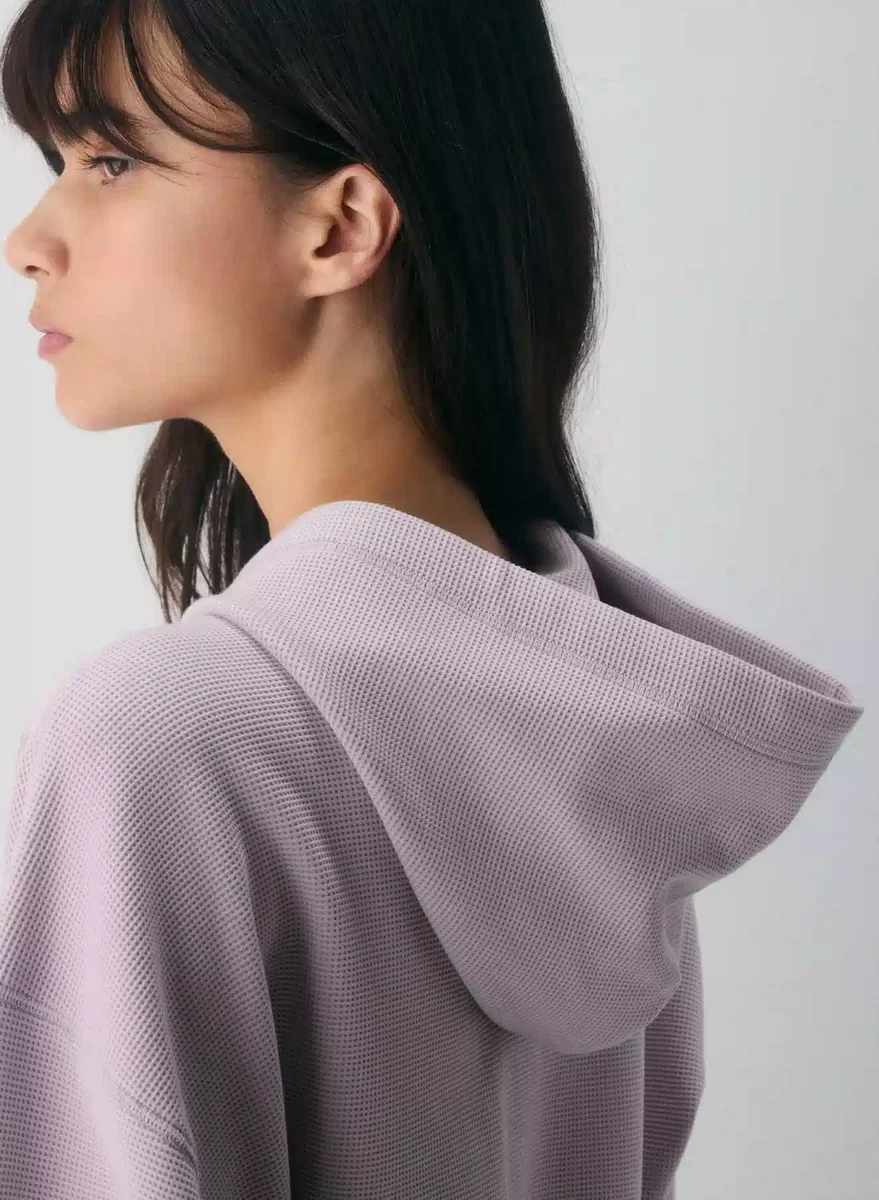 Locker sitzender Waffel-Hoodie mit Reißverschluss