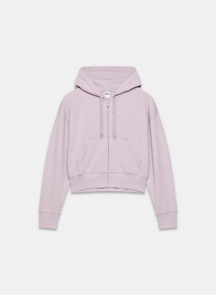 Gemütlich wie am Wochenende, jeden Tag der WocheDies ist ein Hoodie mit Reißverschluss, Kängurutaschen, gerippten Bündchen und lockerer Passform. Er ist aus Wafflex gefertigt – unserem neuen und verbesserten weichen Stretchmaterial, das sich anschmiegsam an den Körper schmiegt und eine Waffelstruktur aufweist. Er besteht zu 54 % aus TENCEL™ Lyocell.