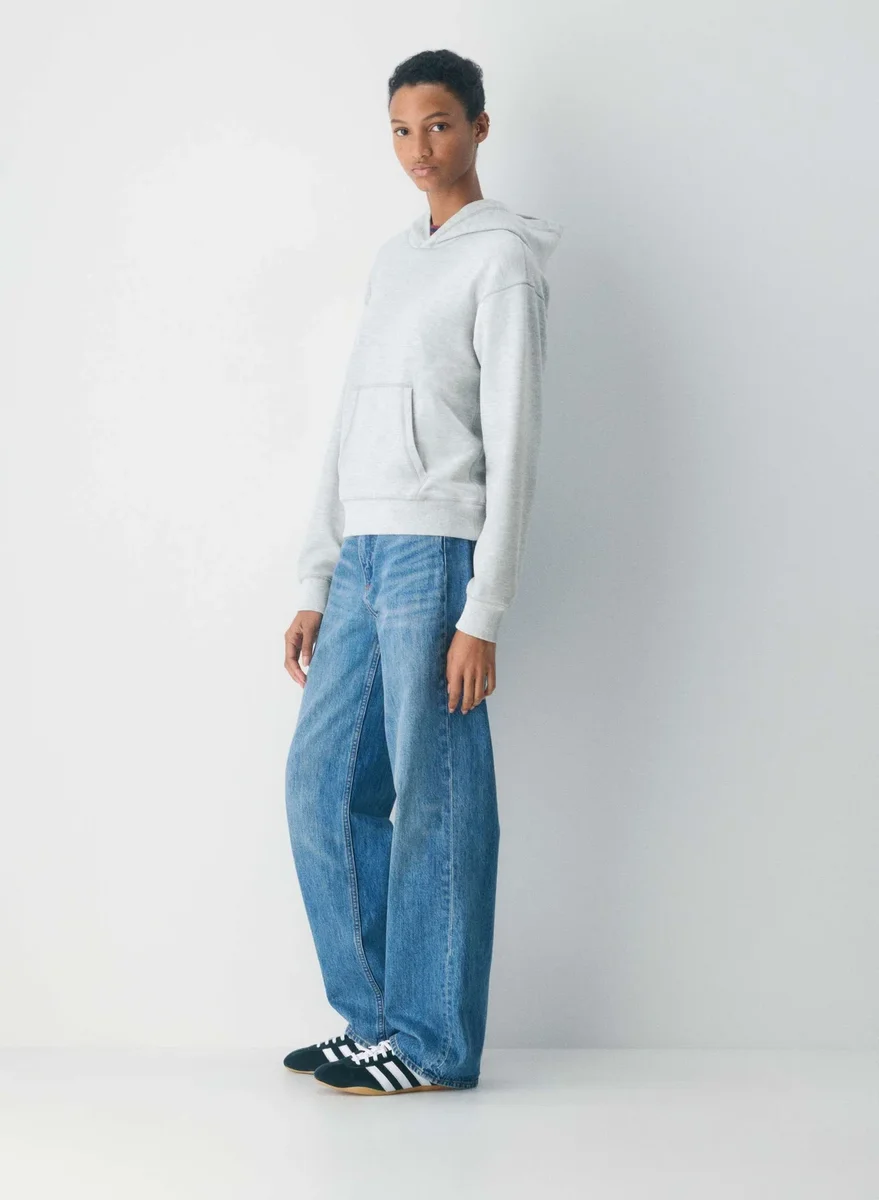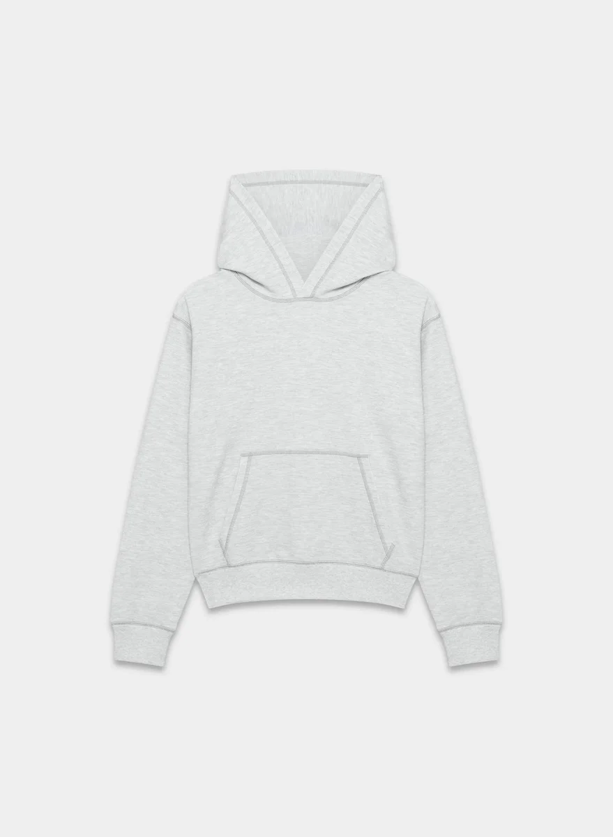 Das ist also der Gipfel des Komforts. Dies ist ein lässiger Hoodie mit Kängurutasche, gerippten Bündchen und überschnittenen Schultern für eine lockerere Passform. Er ist aus Wafflex gefertigt – unserem