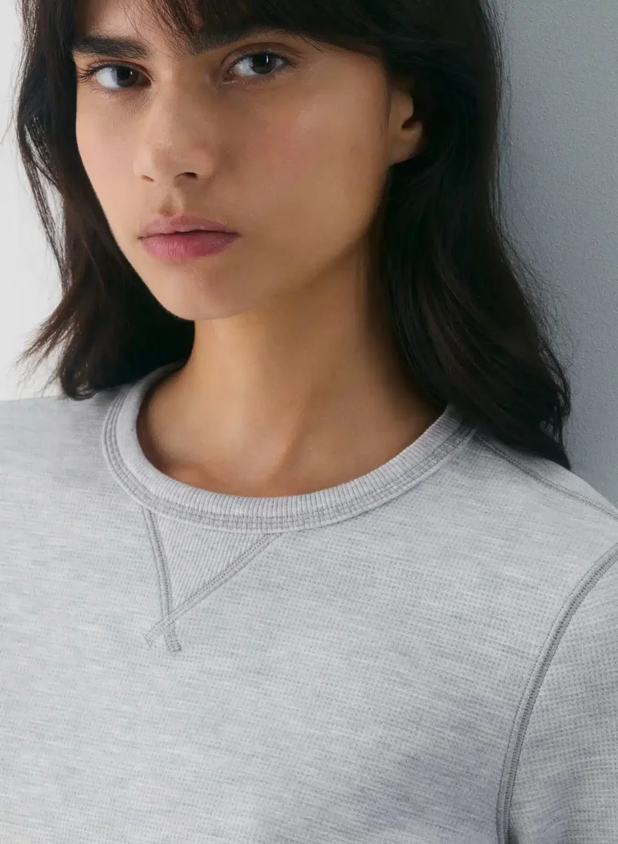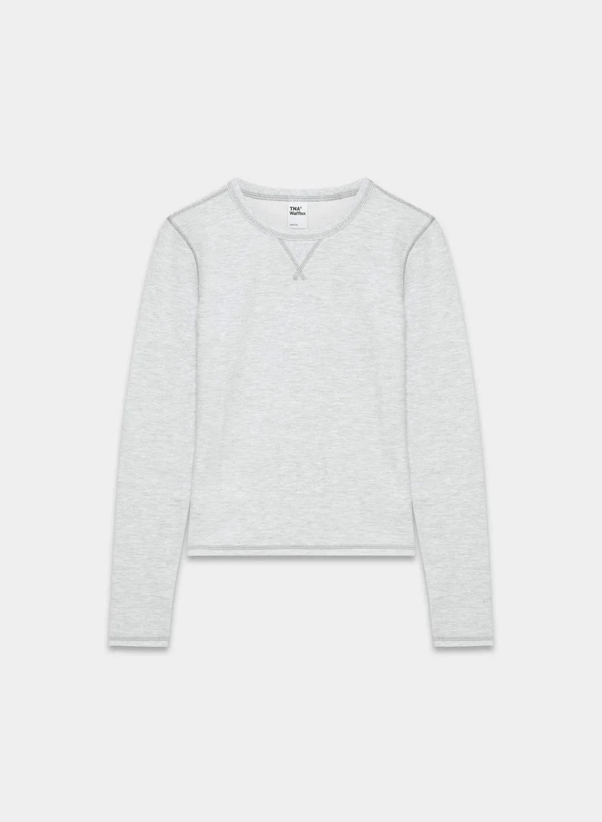 Gemütlich ist gut! Dies ist ein Langarm-T-Shirt mit schmaler Passform. Es wurde aus Wafflex hergestellt – unserem neuen und verbesserten weichen, dehnbaren und körpernahen Stoff mit Waffelstrick.
