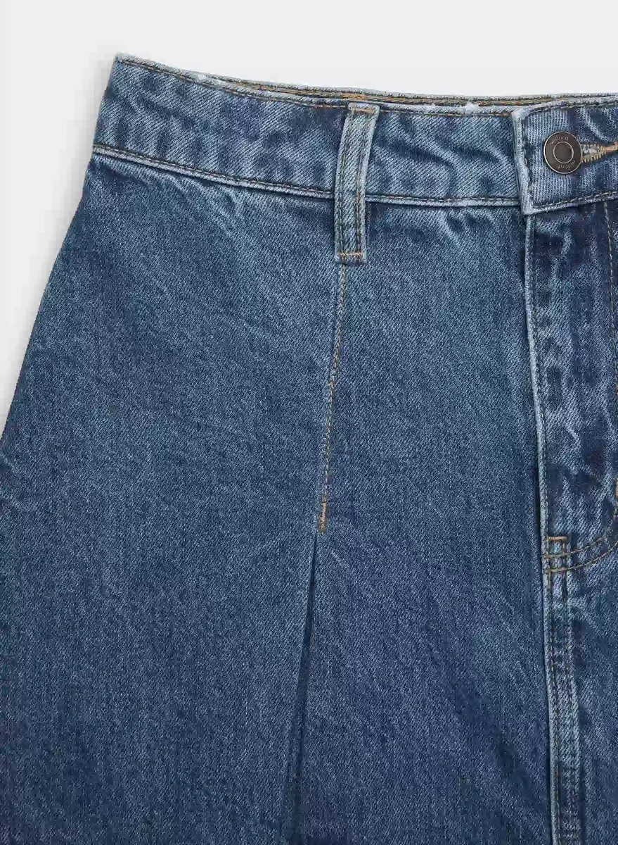 Nicht dehnbarer Midirock aus plissiertem Denim